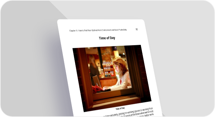 Chapter9: HowtoFindYourOptimalWorkEnvironmentandBoostProductivity 90 TimeofDay TimeofDay Asmoreofusareworkingremotely,joiningco-workingspacesorworkingfrom homethesedays,wehavemoreflexibilitytoworkatthetimeswhenwe’remost productive.Wecanfinallypayattentiontowhathelpsusdomore,betterwork. Tostart with, we all have a built-in body clock called a circadian rhythm that runs a little differently to everyone else’s. This is what determines whether we’renightowlsormorninglarks.Dependingonhowyourinternalbodyclock runs, you could be more suited to a particular part of the day. Generally speaking, we all start out being most suited to early mornings, and our body clocks slip later during adolescence, when we prefer to sleep in and stay up late. As we become adults, some of us hang on to these night owl tendencies, othersbecomeextrememorninglarks,andmostofusslideintoacomfortable middleground.