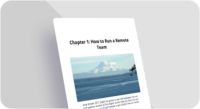 Chapter1:HowtoRunaRemote Team Since October 2011, Zapier has grown to over 200 employees. You can read previous versions of this chapter written when our team size was 20andourteamsizewasjust6people,togetafeelforhowourremote teamhasscaled. Manycompanies,suchAutomattic, Buffer, and GitLab are successful as 100% remote teams. Yet it’s still not a common company structure and, unfortu- nately, information about how to set up remote work so that you and your teamcanbesuccessfulisstill scarce. We want to share what we’ve learned so far. Zapier has always run as a remote team. We’ve grown from three founders to over 200 people working remotely in 20 countries. We’ve gotten a lot of questions about how we makeitwork,sothischapterwillexplainthat. Now,ifyouwanttodebatewhat’sbest—remoteworkorco-locatedwork—this