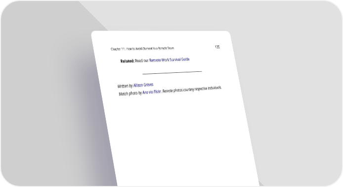 The Ultimate Guide to Remote Work Page 138 Page 140Chapter11: HowtoAvoidBurnoutinaRemoteTeam 135 Related: Read our RemoteWorkSurvivalGuide Written by Allison Groves MatchphotobyAnaviaFlickr.Remotephotoscourtesyrespectiveindividuals.