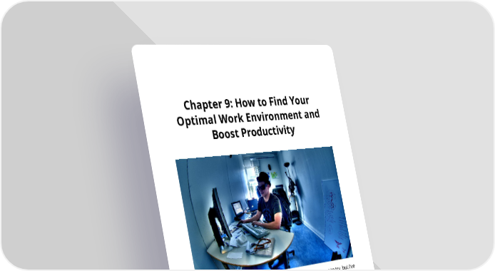 Chapter9:HowtoFindYour OptimalWorkEnvironmentand BoostProductivity There’snoshortageofproductivityarticlestoreadortechniquestotry,butI’ve realized lately that optimal productivity comes in different states for everyone. Notonlyaresomeofusmorninglarksandothersnightowls,someofusneed to move around a lot, others find a standing desk works best, and some of us worktomusicwhileothersneedsilence. ThemostimportantthingI’verecentlycometounderstandaboutproductivity is that embracing what works for me (once I know what that is) is the best way togetmoredone.Ifyou’restrugglingtoimproveyourownworkflows,hereare three areas to start experimenting with.