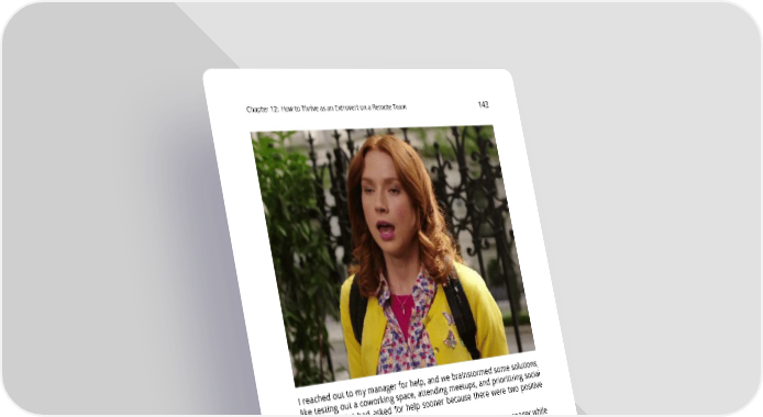 Chapter12: HowtoThriveasanExtrovertonaRemoteTeam 143 I reached out to my manager for help, and we brainstormed some solutions, like testing out a coworking space, attending meetups, and prioritizing social events. I wish I had asked for help sooner because there were two positive outcomesofthatmeeting. Thefirst is that I had the support and encouragement from my managerwhile I worked through this challenge. I felt less isolated immediately after that conversation. The second is that I started being intentional about self-care as an extrovert. And that led me to raise the subject with my team and define these best practices that I’m now sharing with you. Written by Bethany Hills