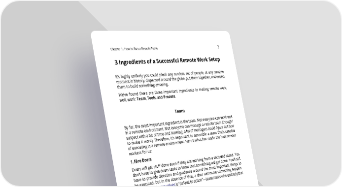 Chapter1: HowtoRunaRemoteTeam 3 3IngredientsofaSuccessfulRemoteWorkSetup It’s highly unlikely you could pluck any random set of people, at any random momentinhistory,dispersedaroundtheglobe,putthemtogether,andexpect themtobuildsomethingamazing. We’ve found there are three important ingredients to making remote work, well, work: Team, Tools, and Process. Team Byfar, the most important ingredient is the team. Not everyone can work well in a remote environment. Not everyone can manage a remote team (though I suspectwithabitoftimeandlearning,alotofmanagerscouldfigureouthow to make it work). Therefore, it’s important to assemble a team that’s capable of executing in a remote environment. Here’s what has made the best remote workersforus: 1. Hire Doers Doers will get stuff done even if they are working from a secluded island. You don’t have to give doers tasks to know that something will get done. You’ll still have to provide direction and guidance around the most important things to be executed, but in the absence of that, a doer will make something happen. OneofZapier’scorevaluesis“defaulttoaction”—teammateswhoembodythat value get work done. 2. Hire people you can trust Remoteworkstopsworkingwhenyoucan’ttrustthepersonontheotherendof the line. If you continually find yourself worrying what someone is doing, then you are spending brain cycles focusing on something other than the product or customers. Trust is key. 3. Trust the people you hire Theflipsideofthisisyoualsoneedtoexhibittrustwiththepeopleyouhire.As amanager,youneedtolearntomanagebyexpectationsratherthanby“butts in seat,” so make sure you can show trust in those you hire.