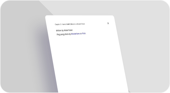 The Ultimate Guide to Remote Work Page 39 Page 41Chapter3: HowtoBuildCultureinaRemoteTeam 36 Written by Wade Foster. Ping pong photo by Wonderlane via Flickr.