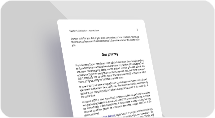 Chapter1: HowtoRunaRemoteTeam 2 chapter isn’t for you. But, if you want some ideas on how one team has set up theirteamtobesuccessfulatremoteworkthenstickaround.Thischapterisfor you. OurJourney Fromdayone,Zapierhasalwaysbeenadistributedteam.EventhoughIandmy co-foundersBryanandMikelivedinthesamecity,wehaddifferentschedules and were bootstrapping Zapier on the side of our day jobs and school. We worked on Zapier in every spare moment we each had, but those moments didn’t magically line up at the same time where we could work in the same room,sobynecessitywebecamearemoteteam. In June of 2012, we were acceptedintoYCombinatorandmovedintoashared apartmentinMountainView,California. The next three months were the only period in our company’s history where everyone has been in the same city at the sametime. In August of 2012, Mike moved back to Missouri while his girlfriend (now wife) wasgraduatinglawschool,andinOctoberof2012,westartedhiring.Andsince we were already a distributed team, it made sense to keep moving that way since we could hire people we knew were awesome, but just didn’t live in the places we lived. OurfirsthirewasMicahBennett,Zapier’sheadofsupportwholivesinChicago. Between October 2012 and July 2014, we added eight more people to the team, with members living in Missouri, Nebraska, Pennsylvania, Florida, and Tennessee. And then we had our first international hires in August 2014, with writer Matthew Guay based in Bangkok, Thailand and full-stack engineer Rob Golding in Nottingham, UK. Over the years, we’ve learned a few things about building and managing a remoteteam.Thereareotherswithmoreexperienceatthisthanusandwith larger teams (Auttomattic, for example, has over 850 employees in over 60 countries). Our story and companies like these have proven that it’s possible toscaleevenwhenyou’refullyremote.Whetheryou’reasmallteamoralarge one, if you want to dip your toes into remote work, consider this your crash course.