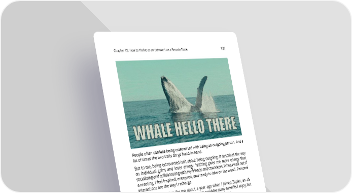 Chapter12: HowtoThriveasanExtrovertonaRemoteTeam 137 Peopleoftenconfusebeingextrovertedwithbeinganoutgoingperson.Anda lot of times the two traits do go hand-in-hand. But to me, being extroverted isn’t about being outgoing. It describes the way an individual gains and loses energy. Nothing gives me more energy than socializingandcollaboratingwithmyfriendsandcoworkers.WhenIwalkoutof ameeting, I feel inspired, energized, and ready to take on the world. Personal interactions are the way I recharge. This posed a problem for me about a year ago when I joined Zapier, an all- remoteteam.TheremoteaspectofmyjobprovidesmanybenefitsIenjoy,but the lack of in-person contact has been a real challenge for me. WiththehelpofmyZapiercoworkers,I’vedevelopedafewpracticesthatIfind vital to my day-to-day well being. Here are our best practices for thriving as an extrovert on an all-remote team. ConsiderSocialActivities as a Form of Self-Care When I worked in an office environment, I could be passive about social interactionbecauseitwasaninherentpartofmyday.Onaremoteteam,much