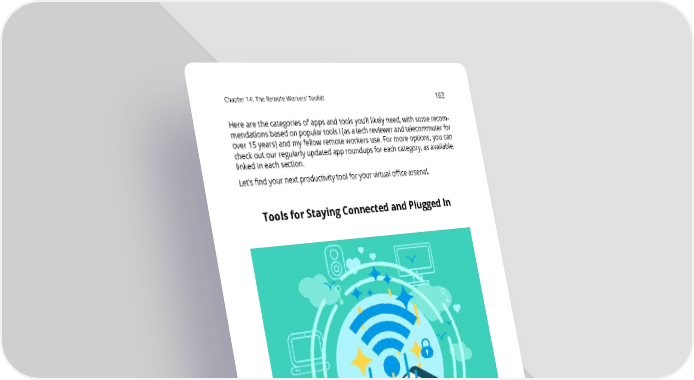Chapter14: TheRemoteWorkers’Toolkit 163 Herearethecategoriesofappsandtoolsyou’lllikely need, with some recom- mendationsbasedonpopulartoolsI(asatechreviewerandtelecommuterfor over 15 years) and my fellow remote workers use. For more options, you can checkoutourregularlyupdatedapproundupsforeachcategory,asavailable, linked in each section. Let’s find your next productivity tool for your virtual office arsenal. ToolsforStayingConnectedandPluggedIn